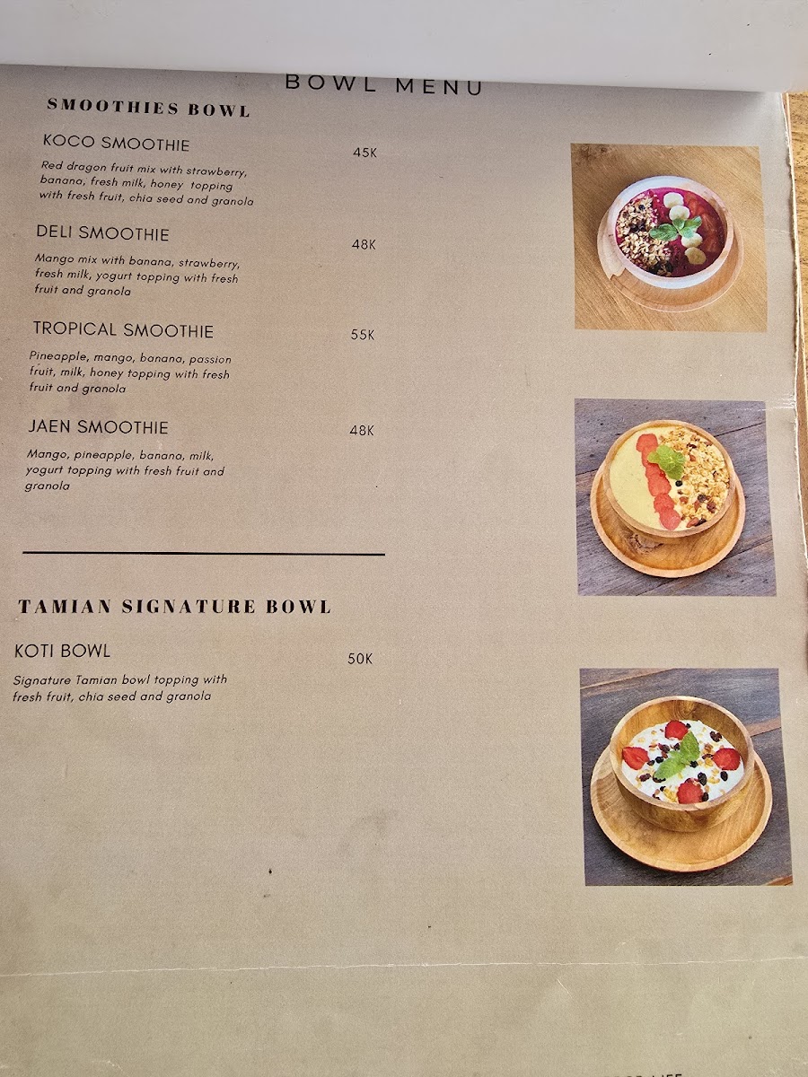 Tamian Cafe Menu